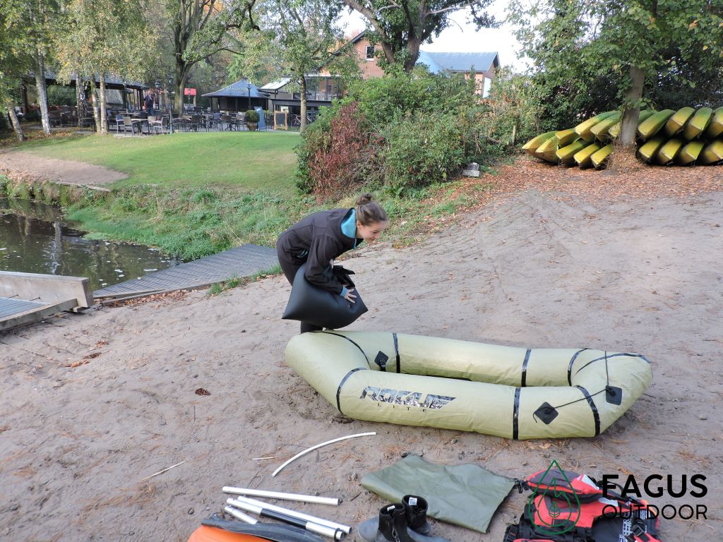Mijn zus, Katrien, wil al sinds de aankoop van mijn eerste packraft mee het water op. Tijdens de zomer lukt het niet, dan maar de herfst. Voor haar eerste kennismaking met packraften stippel ik een rustig traject uit op de Kleine Nete. Mét overnachting… Meteen alle mogelijkheden van de packraft laten zien.