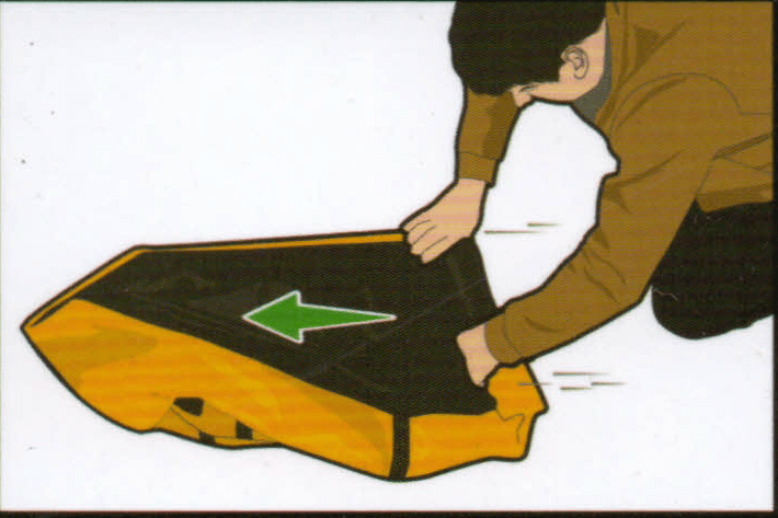 Plooi de packraft in de lengterichting in drie door beide zijkanten naar binnen te brengen.